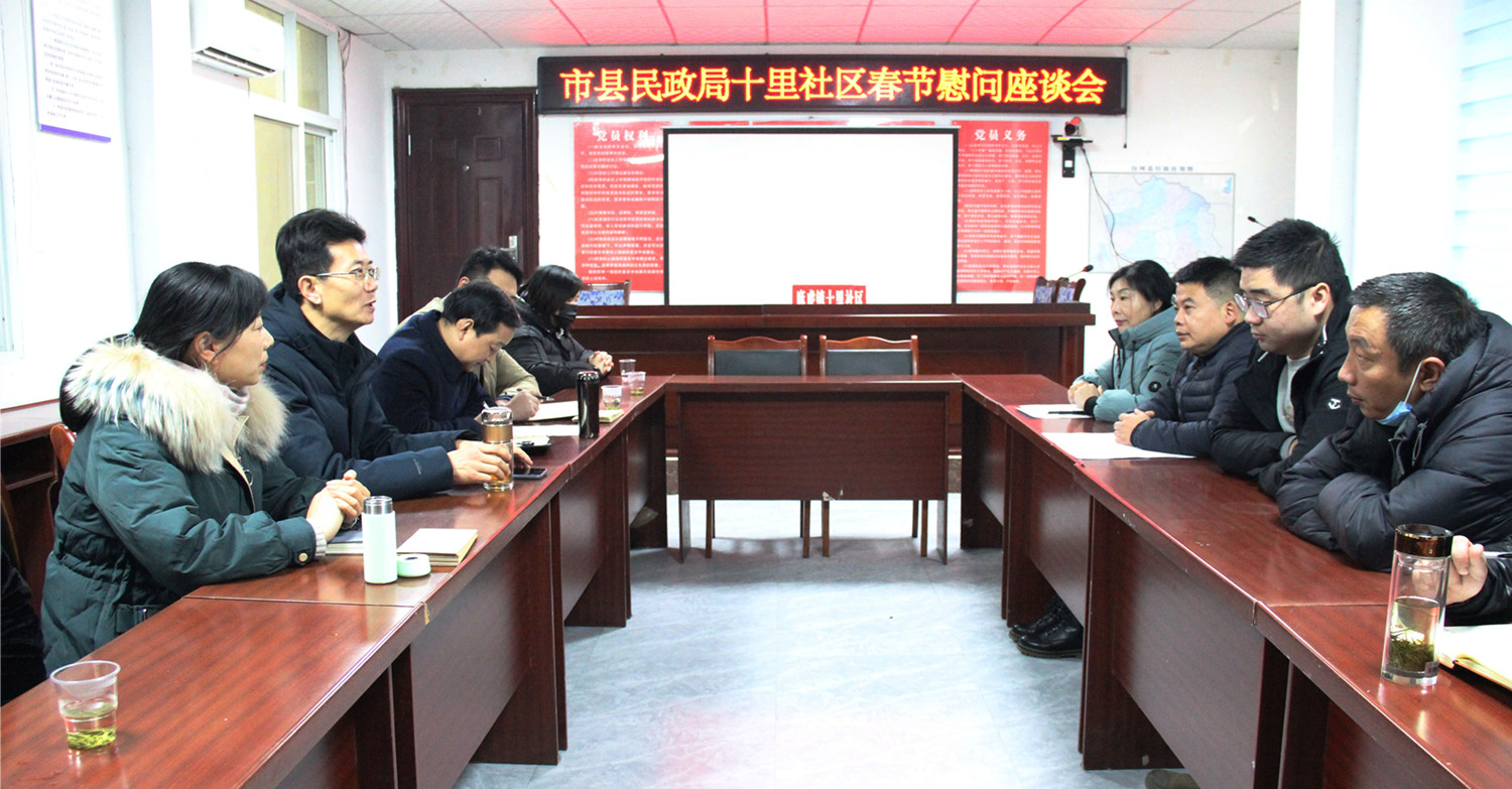 在十里社区活动室,AVxxx 领导与驻村工作队、镇村干部座谈交流,认真听取了社区近期各项工作开展情况、对新一轮驻村帮扶工作以来镇村干部的辛勤付出和工作成效给予充分肯定,勉励大家继续发扬不怕吃苦、勇于奉献精神,统筹做好当前各项工作。重点做好考核评估准备工作、困难群众温暖过冬、疫情防控和2022年工作谋划。