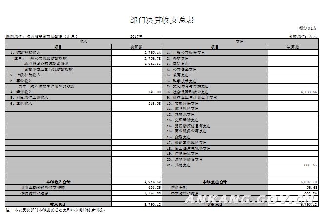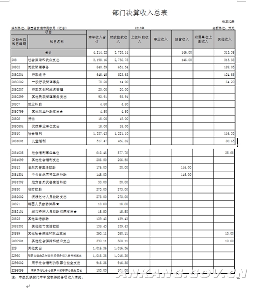 安康市民政系统2017年部门决算说明