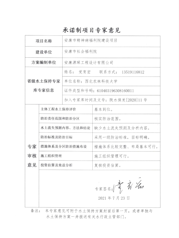 关于安康市精神病福利院项目水土保持方案专家审核意见的公示