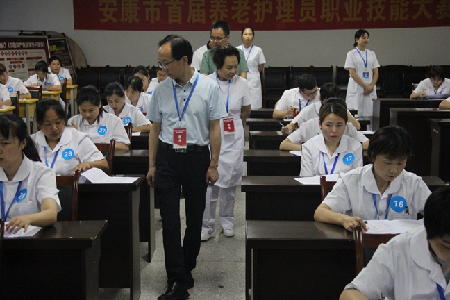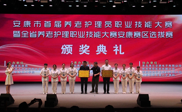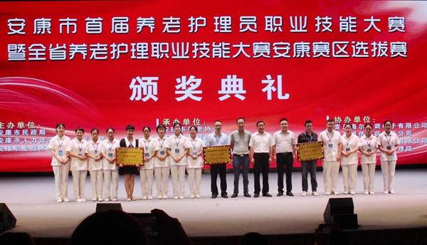 本次大赛青岛海尔空调电子有限公司、陕西博信医药有限公司、安康通达实业集团有限公司、汉滨区阳光爱心护理院协办,分为理论知识和操作技能考核两部分,全面考核养老护理员针对老年人身体、精神状况提供生活照护、基础照护、康复服务、心理支持等方面的理论和实操能力,既是安康养老事业发展和养老护理水平的一次集中展示和成果检阅,也是推进安康养老事业快速发展的重要举措。大赛自今年4月份启动以来,受到了社会各界的普遍关注,各县区养老机构积极响应,认真组织,围绕全员参与、全员提高的目标,普遍开展了岗位培训、技术练兵和技能比武活动,经过县区预赛、最终决赛,汉阴县代表队获得团体一等奖,高新区、旬阳县代表队获得团体二等奖,紫阳、平利、白河代表队获得团体三等奖;王杰、王小燕、肖雨获得个人一等奖3名,龚晓玲等5人获得个人二等奖,丁祥琴等7人获得个人三等奖。获得个人一等奖的参赛选手同时被市人力资源和社会保障局授予安康市技术能手荣誉称号。
