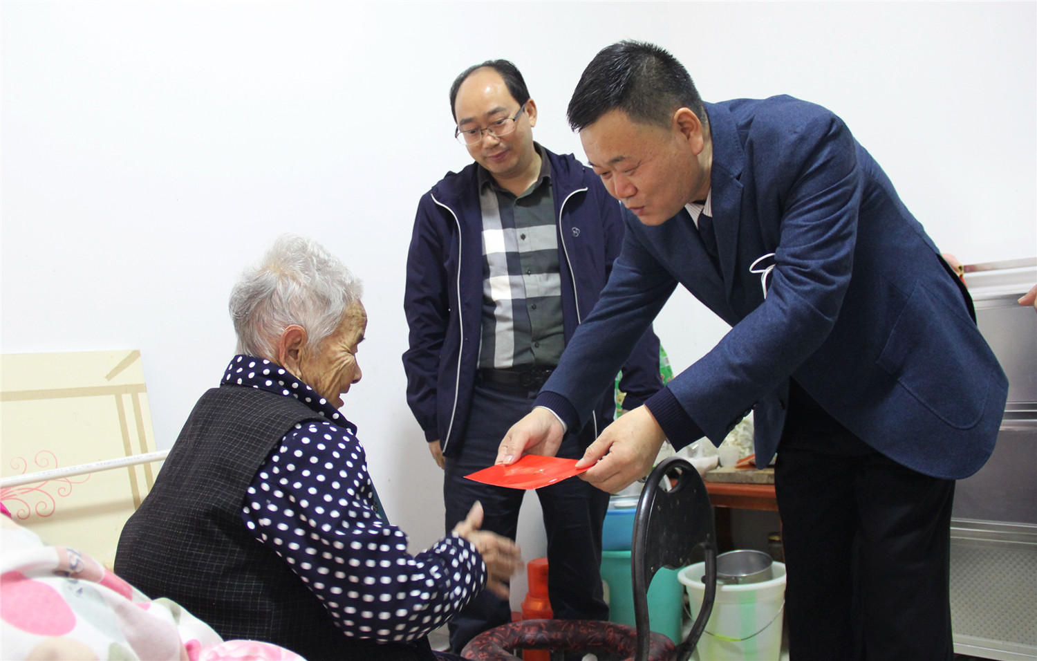 翟玉堂先后到汉阴县蒲双区域敬老院、岚皋县南宫山敬老院看望集中供养五保老人,发放慰问金共计10万元。走访慰问了汉阴县涧池镇105岁老人王长喜,岚皋县南宫山镇受灾群众李泽贵、困难老人叶发英,紫阳县蒿坪镇困难群众杨波、张涛以及平利县老县镇锦屏社区困难老人肖业存、郑自乾等人,把党和政府的关心关爱送到五保老人、困难老人和群众当中,送上了慰问金和浓浓的重阳节祝福。