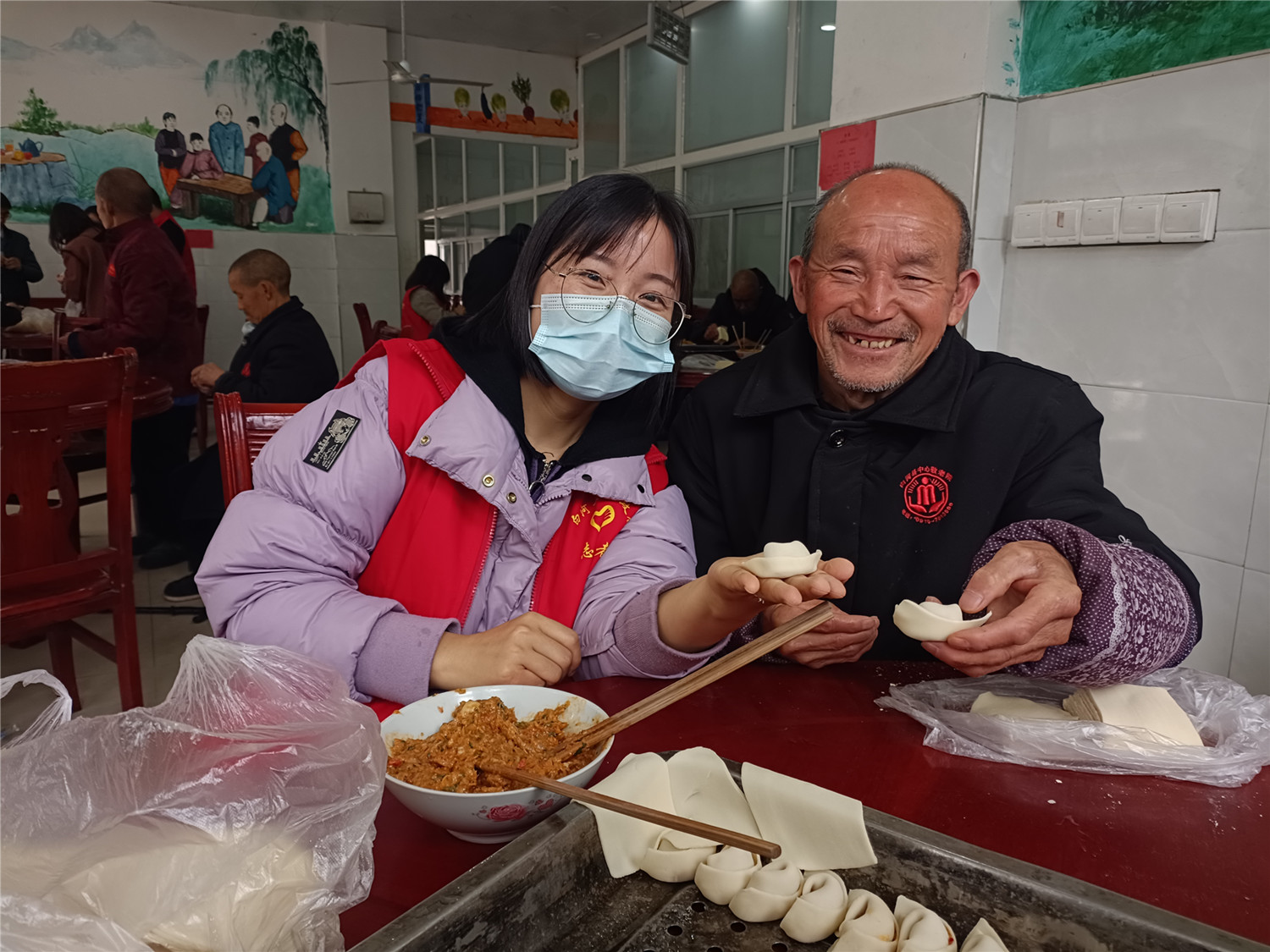 活动现场,春日的暖阳普照大地,柔和的阳光照在老人的脸上,孩子们饱含深情的诗歌朗诵和活力四射的秧歌舞,让老人们看得如痴如醉,现场更是迎来阵阵掌声,活动结束后,志愿者们与老人们一起包饺子、拉家常。