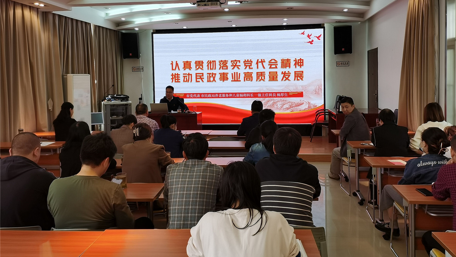 4月13日,市救助管理站举行市第五次党代会精神宣讲报告会。市第五次党代会代表、AVxxx 养老服务和儿童福利科科长杨厚生作宣讲报告。