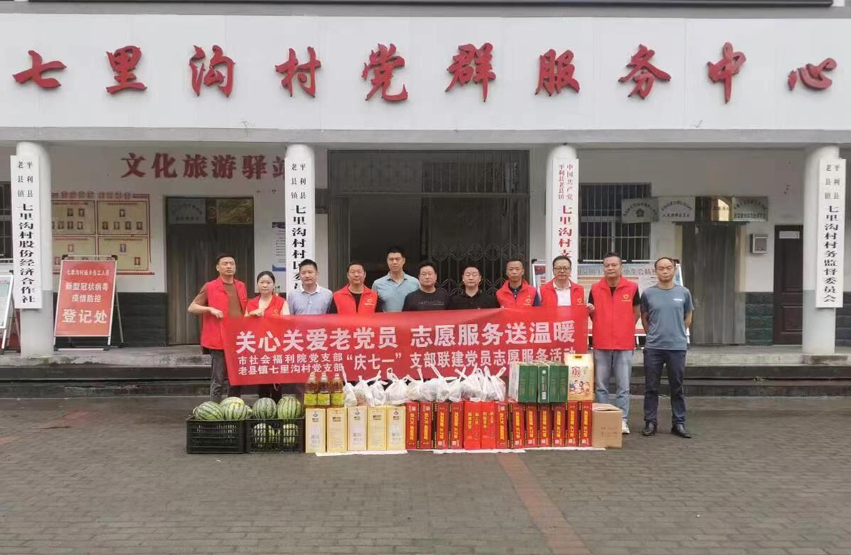 2022年是建党101周年,也是党的二十大胜利召开之年。6月23日,市社会福利院党支部联合老县镇七里沟村党支部开展庆“七一”支部联建党员志愿服务活动,走访慰问了老党员、困难党员和驻村工作队,向他们送上组织的关怀,致以节日的问候。