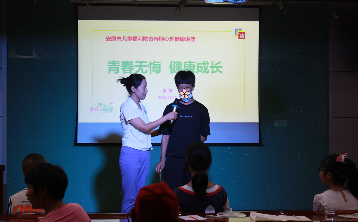 该院邀请了资深心理咨询师张琳老师,给孩子们上了一堂《青春无悔、健康成长》的青春期心理课。另外儿童福利院两位老师也分别就夏季常见病预防和假期思想教育、学习安全、社会实践等做了假期生活安排。三位老师的讲座既有理论知识,又结合生活事例深入浅出地讲解,让在场的每一位学生都深受启发、受益匪浅。