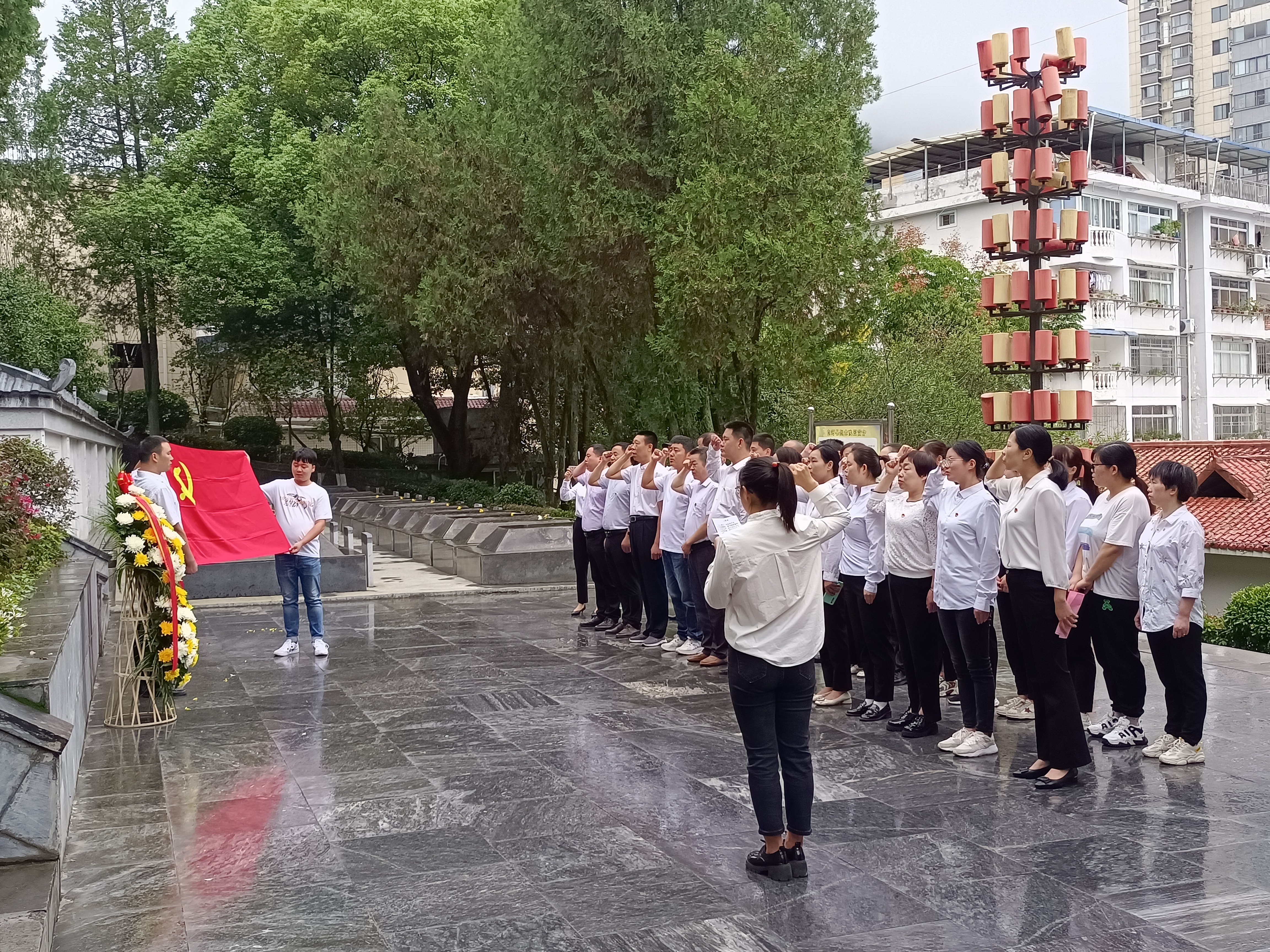 活动中,全体人员来到县烈士陵园,向革命烈士敬献花圈,默哀三分钟,重温入党誓词,瞻仰烈士事迹,表达对革命先烈的崇高敬意和敬仰。