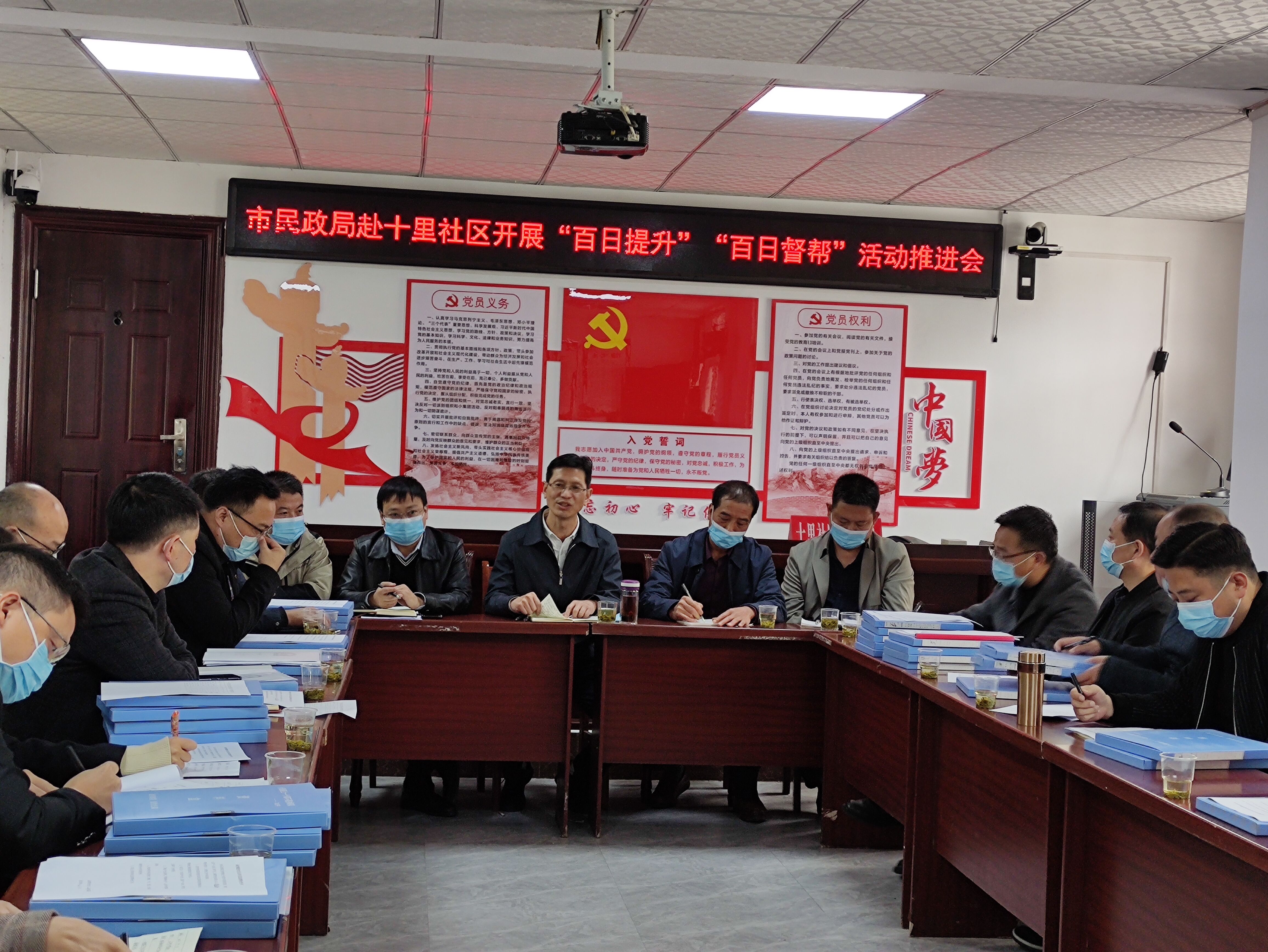 在社区党群服务中心召开的“双百”行动推进会上,叶荣斌同镇、社区干部和驻村工作队员进行了深入座谈交流。详细了解社区集体经济发展、脱贫人口、农户收支、防返贫动态监测和驻村帮扶等情况,镇、社区负责人和驻村第一书记就政策宣传、户情排查、疫情防控、环境卫生整治等工作进行了详细解读,对入户走访任务进行了全面安排。