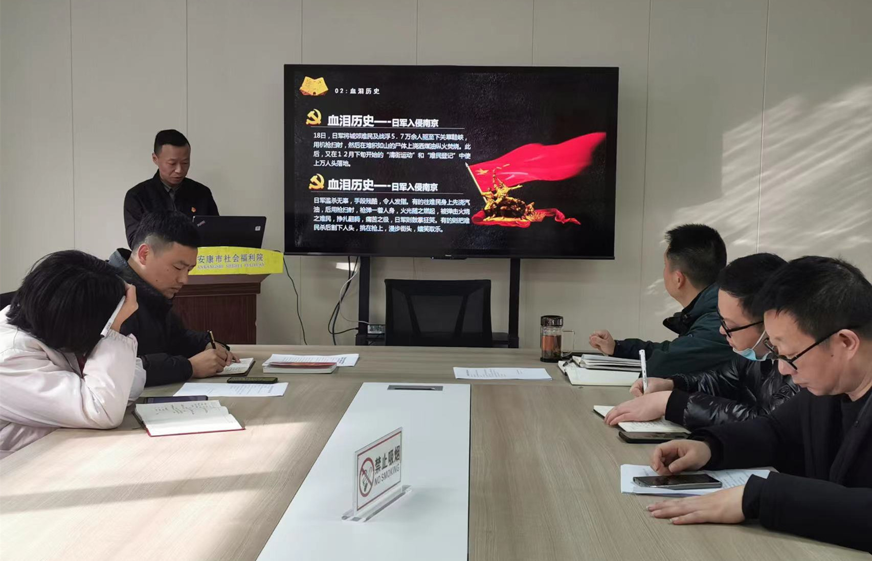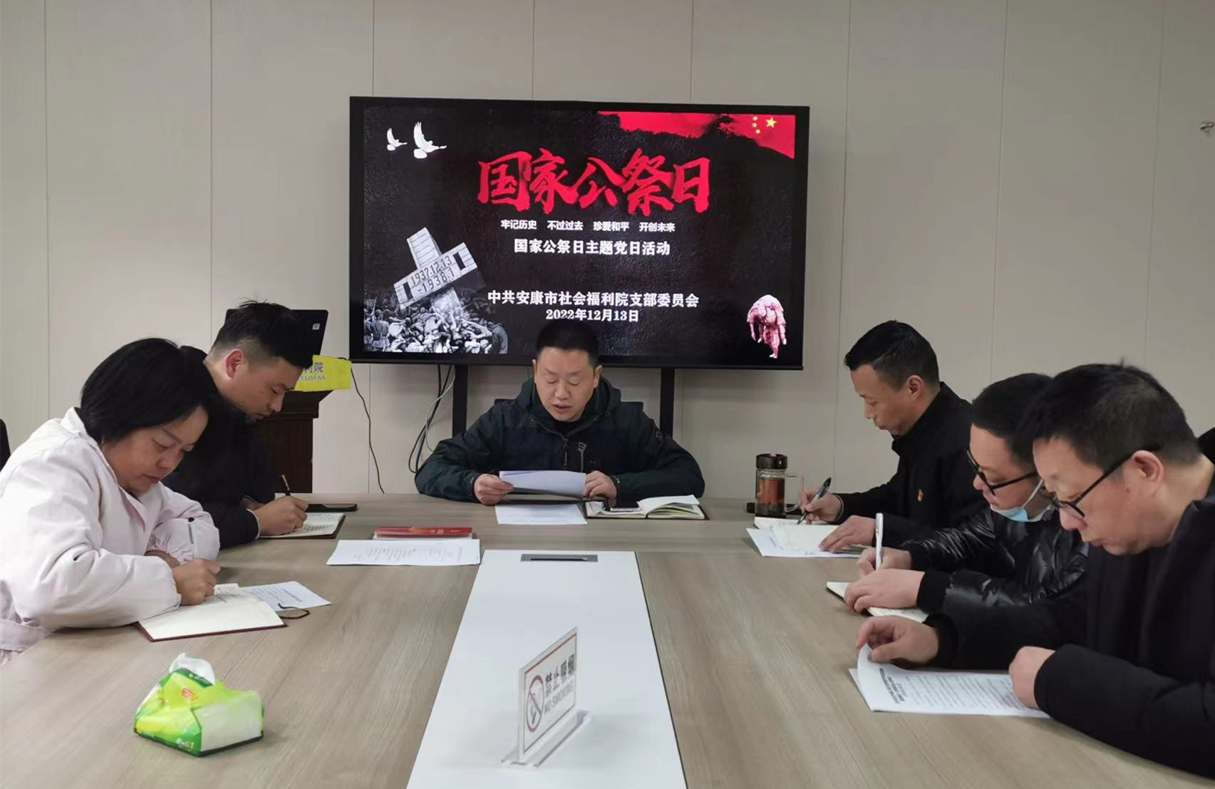 12月13日是第九个国家公祭日,为沉痛悼念南京大屠杀的遇难同胞,缅怀为中国人民抗日战争胜利献出宝贵生命的革命先烈和民族英雄,安康市社会福利院党支部组织开展“国家公祭日主题党日活动”。