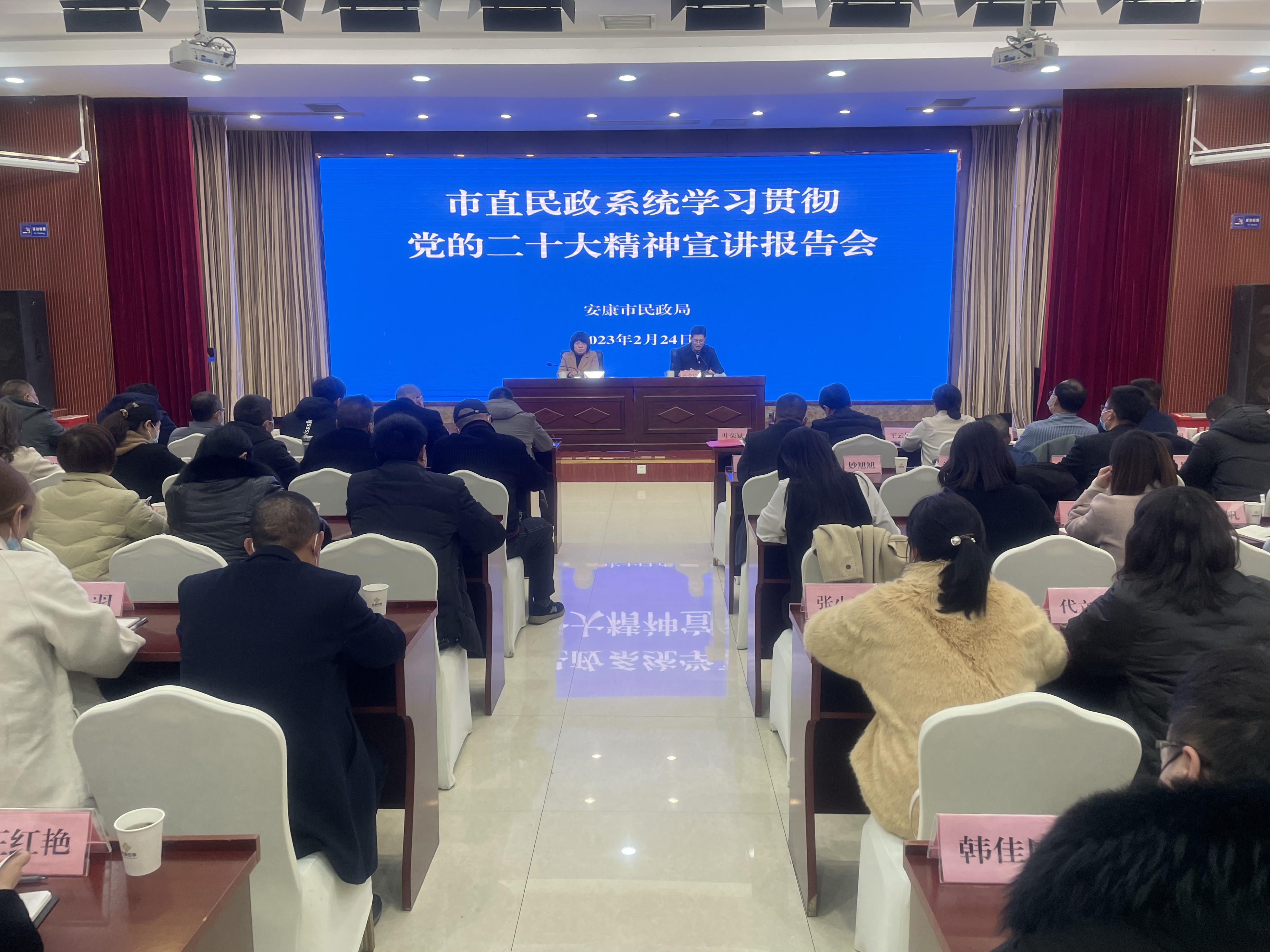 为进一步深化党的二十大精神学习宣传贯彻,推动党的二十大精神在市直民政系统落地生根,2月24日,AVxxx 举办市直民政系统学习贯彻党的二十大精神宣讲报告会。市委宣讲团成员、市委党校哲学文史教研室主任、教授陈菊应邀作宣讲报告。AVxxx 党组成员、副局长叶荣斌主持报告会。