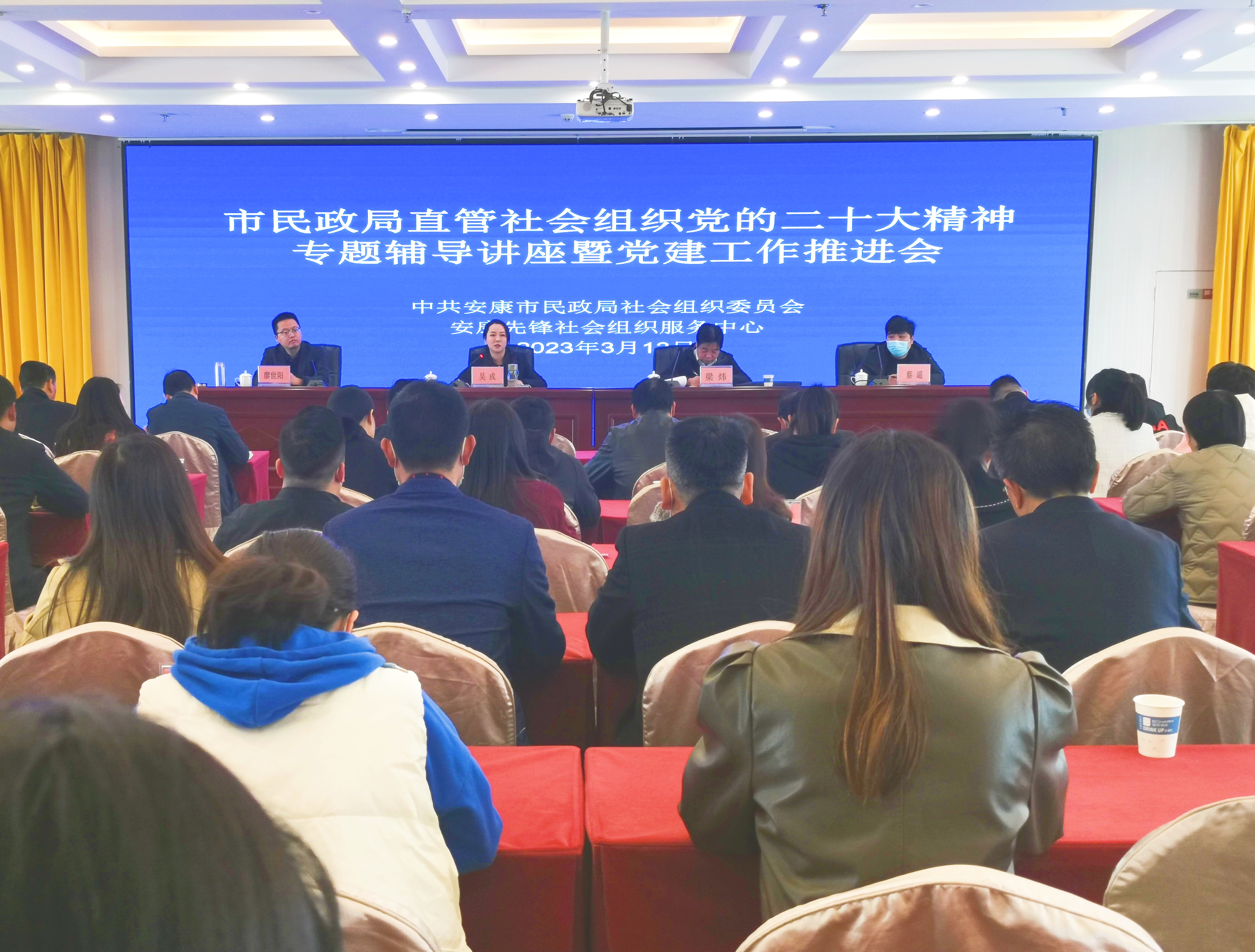 3月13日上午,AVxxx 社会组织党委组织召开了市直管社会组织党的二十大精神专题辅导讲座暨党建工作推进会,会议邀请市委宣讲团成员、市委党校副教授廖世阳作学习贯彻党的二十大精神专题辅导,AVxxx 社会组织党委书记、副局长吴戎出席会议并讲话,AVxxx 各直管社会组织党员、主要负责人等70余人参加了会议。