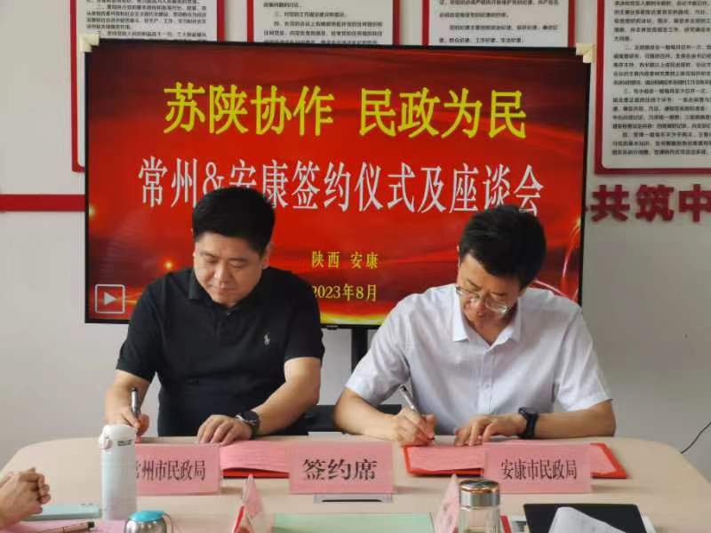 对口帮扶合作框架协议》,常州市陕西商会与安康市社会组织服务中心签订了《结对帮扶框架协议》,并围绕社会救助、殡葬改革、养老服务、社会组织培育管理以及进一步开展协作帮扶等进行了深度的交流。