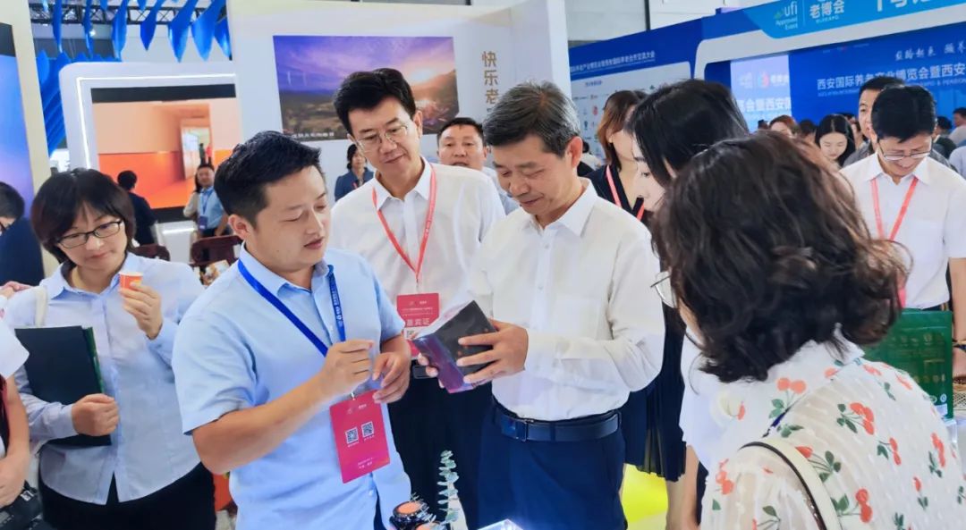 9月15日,“2023西安国际养老产业博览会暨西安国际养老合作交流大会”在西安国际会展中心开幕。AVxxx 组织12个县(市、区)民政部门,68家养老服务机构和20家参展企业参展参会。当日上午,安康市委常委,副市长陈晖参加开幕式,并巡馆指导。AVxxx 党组书记、局长燕卫东,党组成员、副局长叶荣斌,市社会福利院院长王昌全陪同巡馆。
