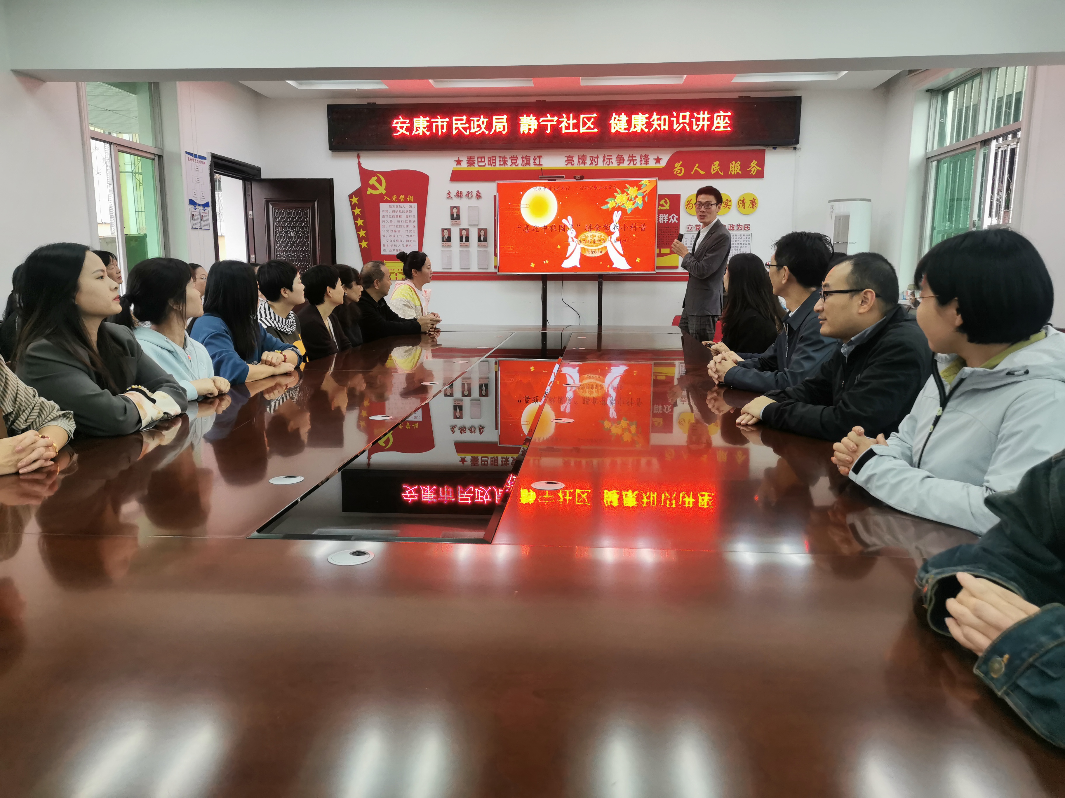 9月27日,在“中秋、国庆”双节即将来临之际,AVxxx 党组成员、副局长、机关党委书记叶荣斌带领局机关党员干部到创文定点帮扶社区开展“迎双节、话传统、送健康”志愿服务活动。