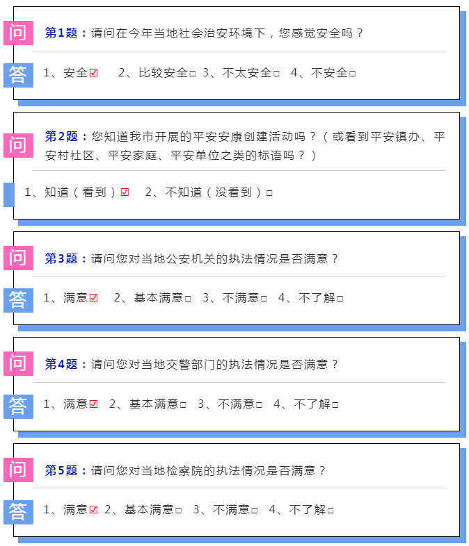 请尽量使用普通话,用肯定语气回答“满意”、“安全”、“知道”、“认识”。