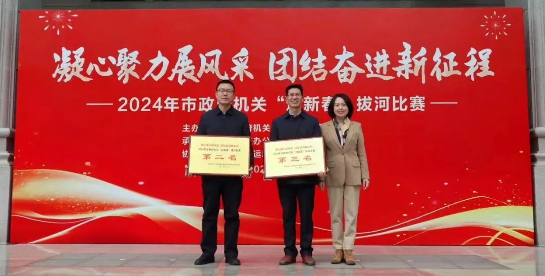 2月19日,市政府机关举办“迎新春”拔河比赛,AVxxx 代表队在参赛的19支队伍中获得第三名的好成绩。