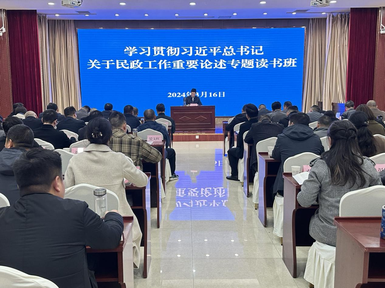 举办深入学习习近平总书记关于民政工作重要论述专题读书班,局党组成员、副局长叶荣斌主持开班式并作动员讲话。