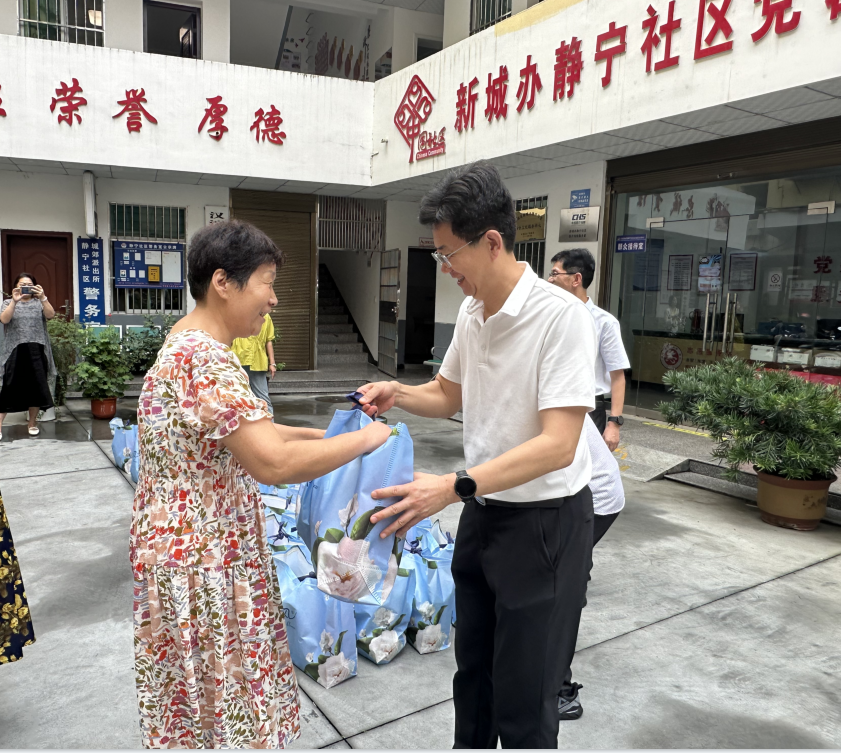 党组书记、局长燕卫东带领机关党员干部到静宁社区开展“夏季送清凉”暨防汛“三到户”活动。为炎炎夏日坚守在一线的社区工作者送去清凉与关爱。局党组成员、副局长叶荣斌陪同参加。