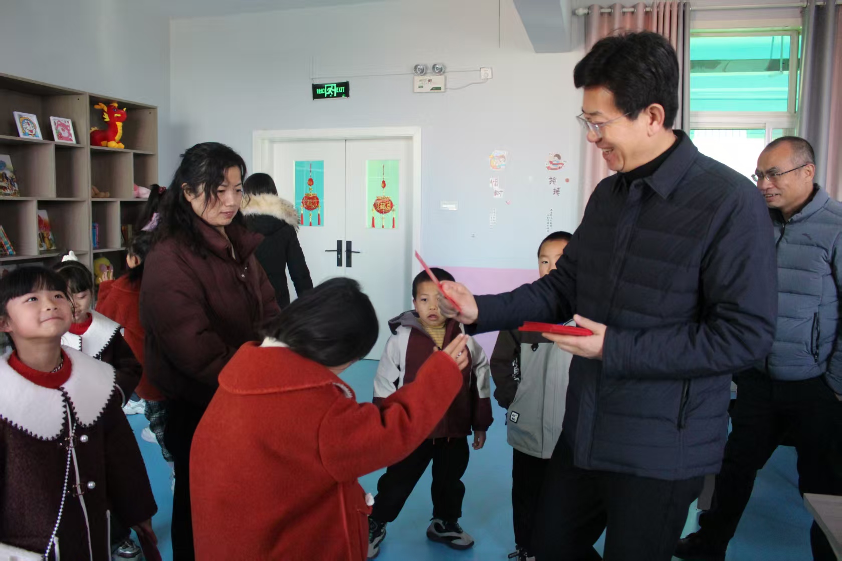 院内红红的灯笼高高挂起,孩子们穿着新衣,笑逐颜开。燕局长给孩子们分发了新年红包,祝福孩子们新的一年健康快乐,茁壮成长。对坚守在一线辛勤付出的工作人员表示感谢,并致以诚挚的问候和新春祝福。