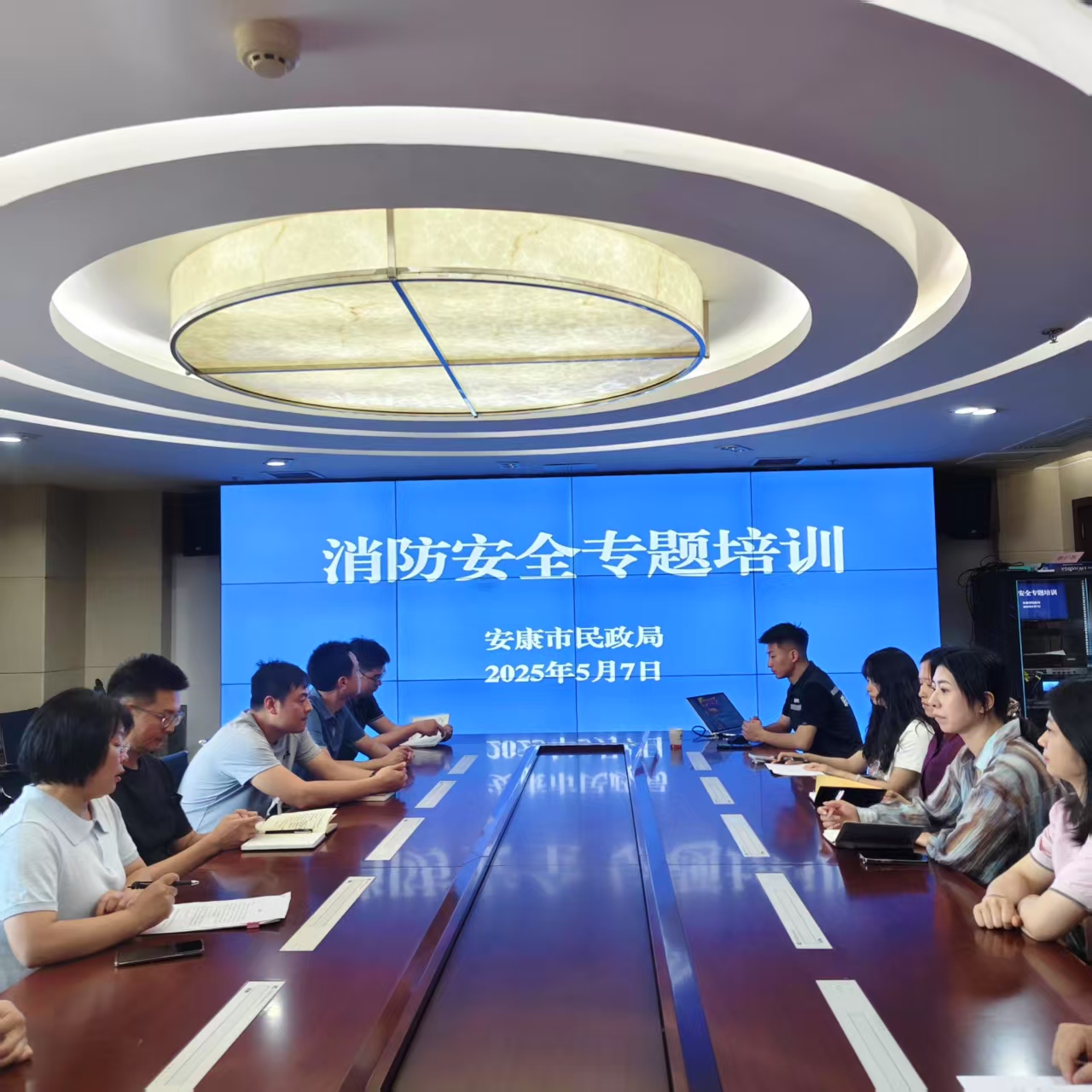 为进一步强化民政系统干部职工的消防安全意识,提升应急处置能力,预防火灾事故发生,AVxxx 于5月7日开展“人人讲安全、个个会应急——查找身边安全隐患”消防知识培训。局机关全体干部职工参加。