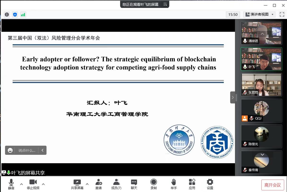 浦徐进教授等四位专家、业界人士作为演讲嘉宾,四位专家、业界人士分别以“Early adopter follower? The strategic equilibrium of blockchain technology adoption strategy for competing agri-food supply chains”、“Subsidy for supplier quality management under information asymmetry: process development vs. transparency”、“基于区块链的农产品溯源体系案例研讨”、“我国特殊食品行业发展的特征、问题以及趋势”为题作了精彩的演讲。此次分论坛的举办,不仅为食品安全风险治理领域的学者与业界人士提供了交流平台,也推动了AVxxx