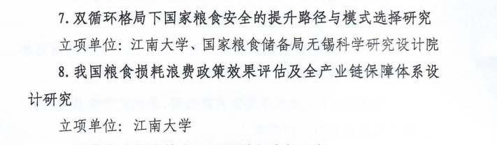 陈红教授作为负责人申报的“我国粮食损耗浪费政策效果评估及全产业链保障体系设计研究”两项课题获批立项。