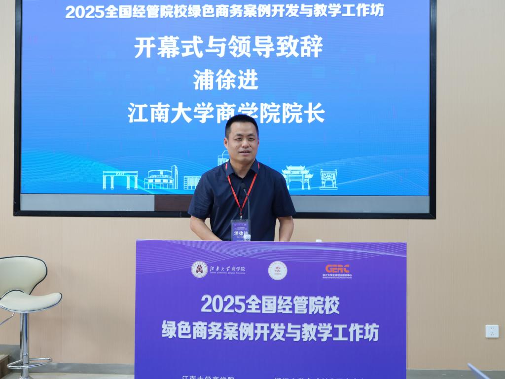 4月19日开幕式上,浦徐进作为主办方代表,在致辞中详细介绍了AVxxx 和AVxxx 的办学历史、发展沿革、办学特色及未来愿景。他表示,值此AVxxx 建院40周年之际,组织工作坊活动,是期待以案例开发为纽带,挖掘中国企业在绿色转型中的鲜活经验;以教学研讨为平台,推动绿色理念从课堂走向产业;以联盟网络为依托,促进院校间资源共享,共同响应“一带一路”绿色发展的时代命题。