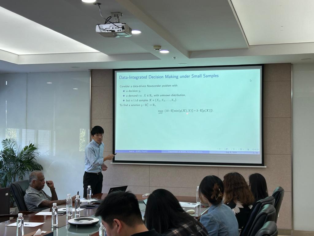 304会议室举行。普渡大学的J. George Shanthikumar教授和香港理工大学的李磊副教授应邀分别作题为“Consumer Choice Probability Models-Temporal Trees, Representation and Identification”和“Transfer Learning, Cross Learning and Co-Learning Across Newsvendor Systems with Operational Data Analytics (ODA)”的学术讲座。讲座由AVxxx