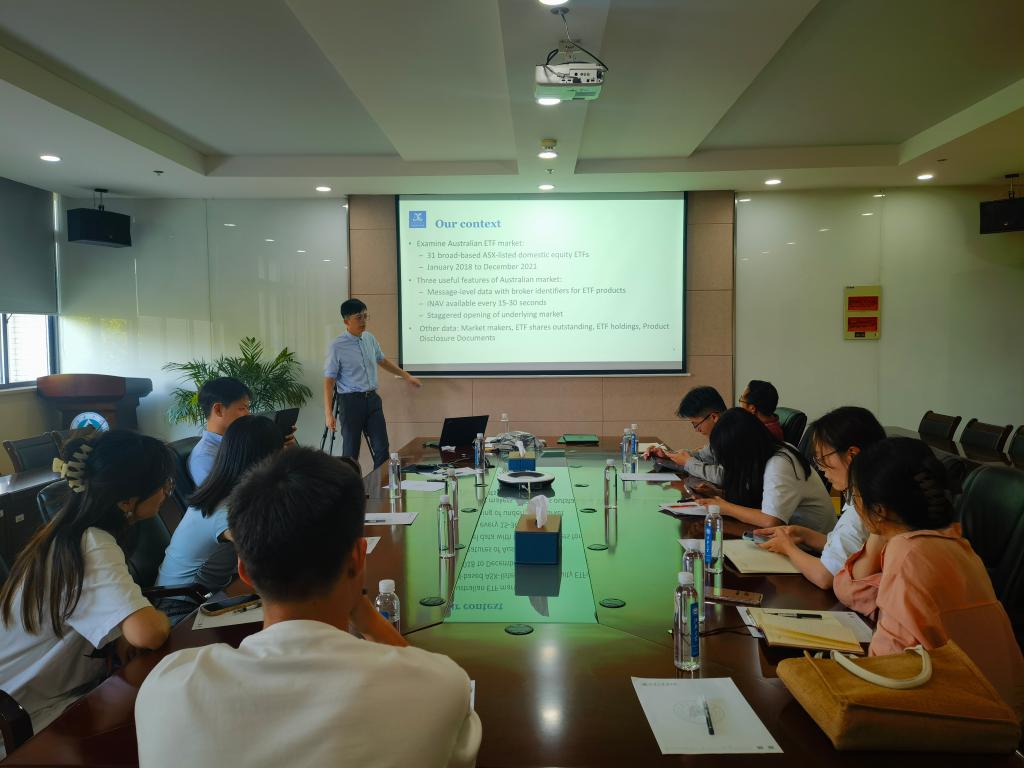 304会议室举行。澳大利亚墨尔本大学的金融学博士孙晨飞应邀作题为“Liquidity provision in the Exchange Traded Fund market(交易型开放式指数基金市场中的流动性供给)”的学术讲座。讲座由金融系青年博士唐宁主持,AVxxx