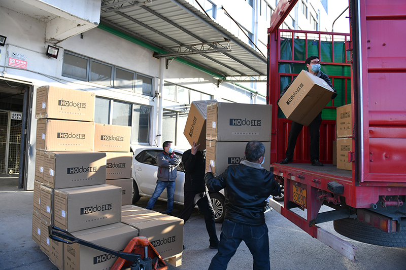 红豆集团所生产的抗疫物资正在装车运往一线