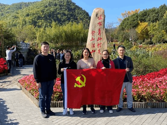 11月15日上午,支部党员一行来到安吉县天荒坪镇余村。2005年8月15日,习近平总书记来到安吉调研,在天荒坪镇余村村委会的会议室里,与干部群众座谈,听说余村人关了污染环境的矿山、打算发展旅游时提出了“绿水青山就是金山银山”的重要理念。支部党员实地调研支部带村、民主管村、生态美村、发展强村、依法治村、平安护村、道德润村、清廉正村的基层治理经验,参观学习智慧农业数据监测系统。大家深深感受到15年的建设,使安吉余村这个仅1000多人口的浙北小山村,从“靠山吃山”的矿山村变身为“养山富山”的“生态村”,形成了“村景合一、全域经营、景区运作”的乡村旅游发展模式,旅游经济蓬勃兴盛,从余村美丽的自然环境中深刻体会到坚持绿色发展是余村富裕、和谐的重要原因。随后一起在“两山”纪念碑前合影留念。
