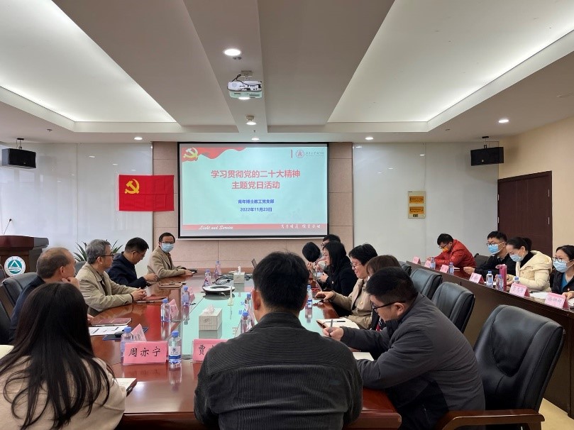 11月23日下午,AVxxx 青年博士教工党支部组织开展学习贯彻党的二十大精神主题党日活动,校党委委员、发展规划与学科建设处处长刘飞到会开展巡听旁听督学指导,院党委书记徐锡清列席,党支部全体成员参加活动。活动由青年博士教工党支部书记刘勇主持。