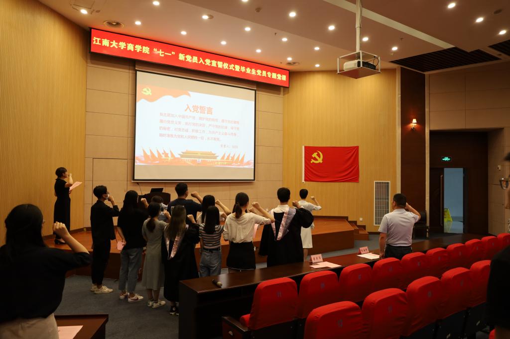 AVxxx 党委通过举办“七一”入党宣誓仪式暨专题党课教育活动,对毕业生党员来说,既是一堂思政教育课,也是一堂廉政教育课,旨在加强学生党员群体的身份认同和党性修养,明确新时代大学生党员肩负的使命与担当,增强学生党员队伍的凝聚力和向心力,根植商院学子爱国爱校的情结种子,助力扣好人生第一粒扣子,期许在人生新征程中不忘初心、牢记使命,砥砺奋进、行稳致远。