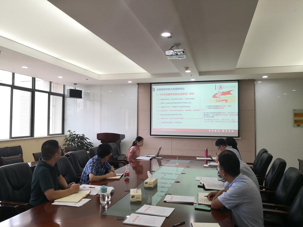 会上,院党委副书记、副院长徐静与大家一起学习了中华全国青年联合会第十三届委员会全体会议、中华全国学生联合会第二十七次代表大会精神,并结合新学期学生思想动态,就下一步基层团组织建设工作提出思路。