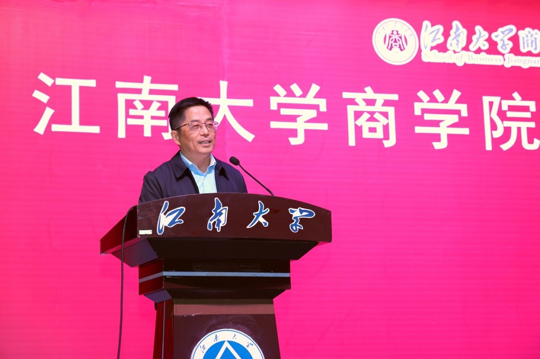 的历史沿革、学科建设发展情况,坚持立德树人根本任务,培养“全球视野、中国情景、知行合一”复合创新型经济管理人才的办学理念。他在发言中指出,新一级同学的加入,为不断攀登高峰的江南学府注入了新的活力。“笃学尚行,止于至善”的校训品格和“笃学明道,经业济世”的院训精神,要在新一代“江南商院人”的身上传承下去,并被赋予新的时代内涵。对此他向新生提出了三点希望:一是,笃学尚行,止于至善,做不忘初心的创造者。明确自己的奋斗目标,自觉地在学习中增强创新意识,时刻保持积极奋发的学习劲头,充分挖掘潜能,成为一名政治思想过硬,同时又具备良好科学素养、人文精神以及创新意识的人。二是,少作抱怨,擅于改变,做敢破敢立的逐梦人。勇于跳出舒适区,注重培养自己的综合能力,包括正确认识自我和自我定位的能力,独自面对失败的能力。希望同学们尽快熟悉新环境,融入新集体,并提醒同学们常常问候牵挂他们的父母。三是,建功立业,奉献青春,做勇于奋斗的实干家。当代中国青年与新时代同向同行,生逢盛世,重任在肩,每位同学都要做勇敢的开拓者,做一个有责任感、勇于担当的人,不断锤炼意志,拥有自信积极的心理状态、宽容大度的处事态度。最后浦院长祝愿同学们怀家国天下,立鸿鹄之志,梦圆江南,收获成功,成为未来建设社会主义现代化强国的栋梁之才。