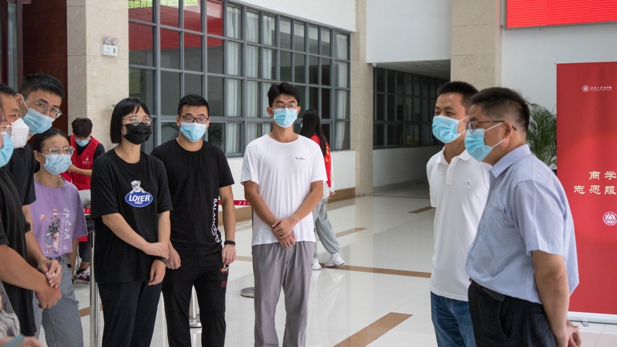 迎新工作严格遵循疫情防控要求,坚持以学生为本温情迎新,提前制定好详细流程,方便学生准确、快速、有序地完成报到。热情洋溢的老师,服务周到的志愿者,独具特色的迎新活动让新生们感受到商院人的周到与热情。
