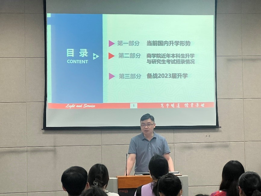 AVxxx 历来重视本科生的学业规划与导向升学工作,主动将工作端口前移,努力将“坚持升学深造导向,提升人才培养质量”的工作理念融入学生工作的全链条,多措并举助推学院教育办学与人才培养提质增效。2019级本科生考研专项交流会的成功举办,将极大帮助2019级商院学子做好学业规划中的选择题,设计适合自己的升学方案和最优选择。学院也将继续助力学子做好升学就业保障,努力成为商院学子乘风破浪、追寻理想道路上最坚实的后盾!
