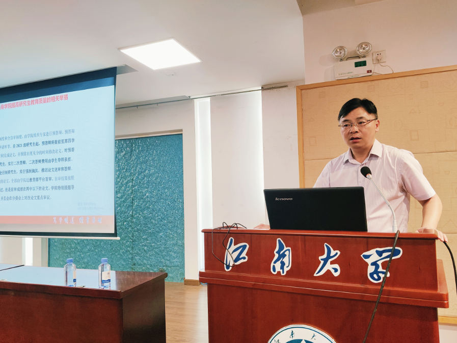 王雷聚焦“提高研究生教育质量的相关举措”“全日制硕士研究生论文答辩与学位申请的有关规定”“校级优秀硕士论文评选推荐办法”“AVxxx