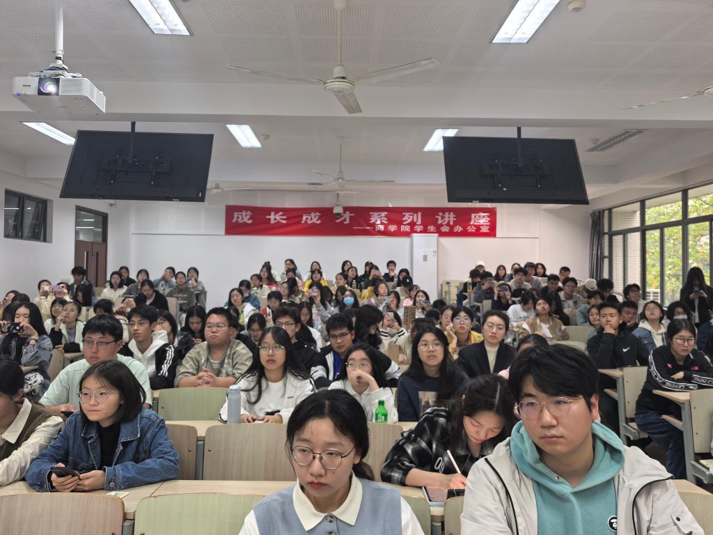 为引导AVxxx 学子深入了解大创项目,明晰未来项目研究方向,10月30日,AVxxx 学生会于二教2C210,举办“成长成才系列讲座——大创项目分享”。讲座邀请获得2024年大学生创新创业训练计划立项的优秀学长学姐担任主讲嘉宾,共同探讨和分享他们参加大创项目的宝贵经验和心得。2023级、2024级本科生共150余人参加此次讲座。