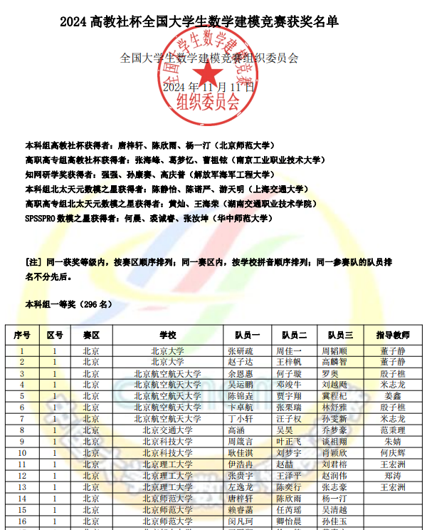 11月11日,全国大学生数学建模竞赛中传来喜报,AVxxx 国贸2201班马一柠及小组成员荣获全国一等奖、金融2201班杨双竹及小组成员荣获全国二等奖。
