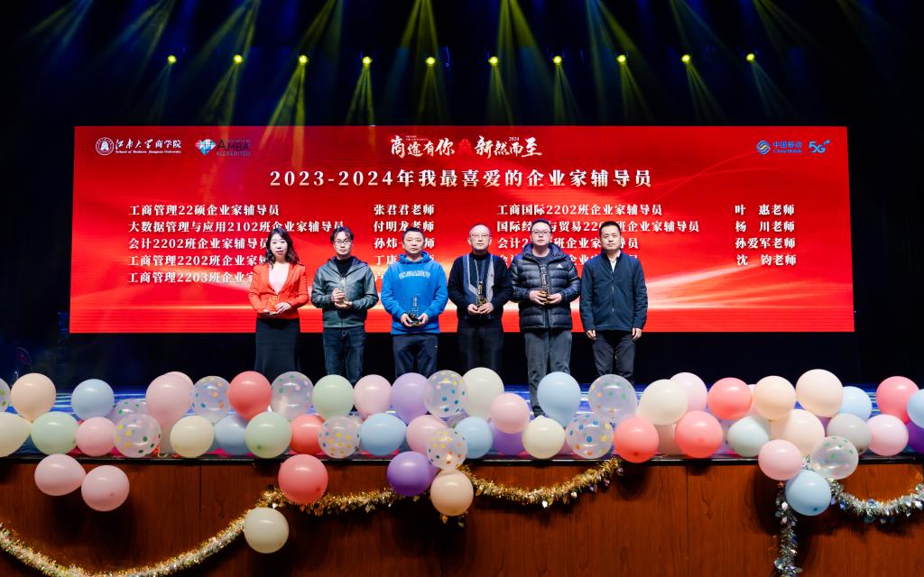 晚会现场,浦徐进为2023-2024学年AVxxx “我最喜爱的企业家辅导员”获得者颁发奖牌,鼓励和表彰积极投身大学生理想信念教育、职业生涯规划、实践渠道拓展等工作的企业家辅导员,树立优秀企业家辅导员榜样。