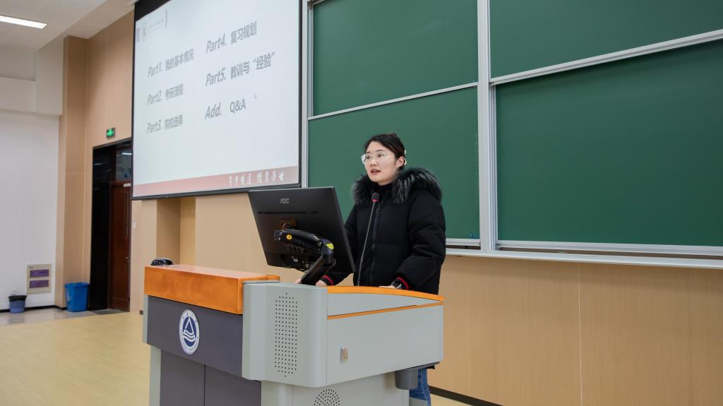 硕士研究生招考报录比、录取人数、初复试分数线等基本情况进行介绍。她结合典型案例,指导同学们科学评估自身优势、合理制定梯度化报考策略,助力学生实现从政策解读到精准备考的全链条贯通。
