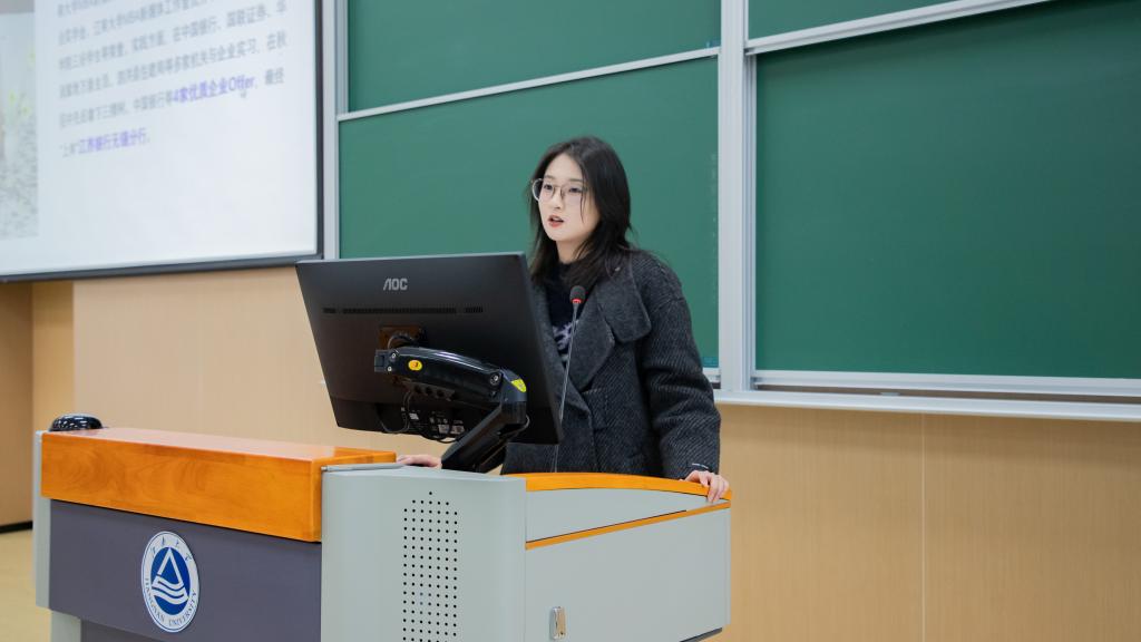 往届优秀学生代表结合自身经历,分别就考研、留学、就业方面分享了经验和心得。2024级金融学专业硕士张晴回顾了备战考研的心路历程,将备考历程划分为四个阶段,重点分享了各阶段的备考规划和复习内容,为正在备考的同学们提供了宝贵的经验参考。2021级工商管理专业学生吴文俊从留学价值、自我评估和申请流程三个方面,分享了自己拿到悉尼大学和澳洲国立大学留学offer的经验,建议大家重点关注均分、语言成绩、实习和比赛经历,全面发展来提升自身竞争力。2021级金融学专业学生陈颖针对选择就业还是读研的困惑,提出从职业需求、个人兴趣和成本三个方面进行考量,向同学们详细介绍了制作简历要求及面试注意事项,并提供了切实的简历投递策略。