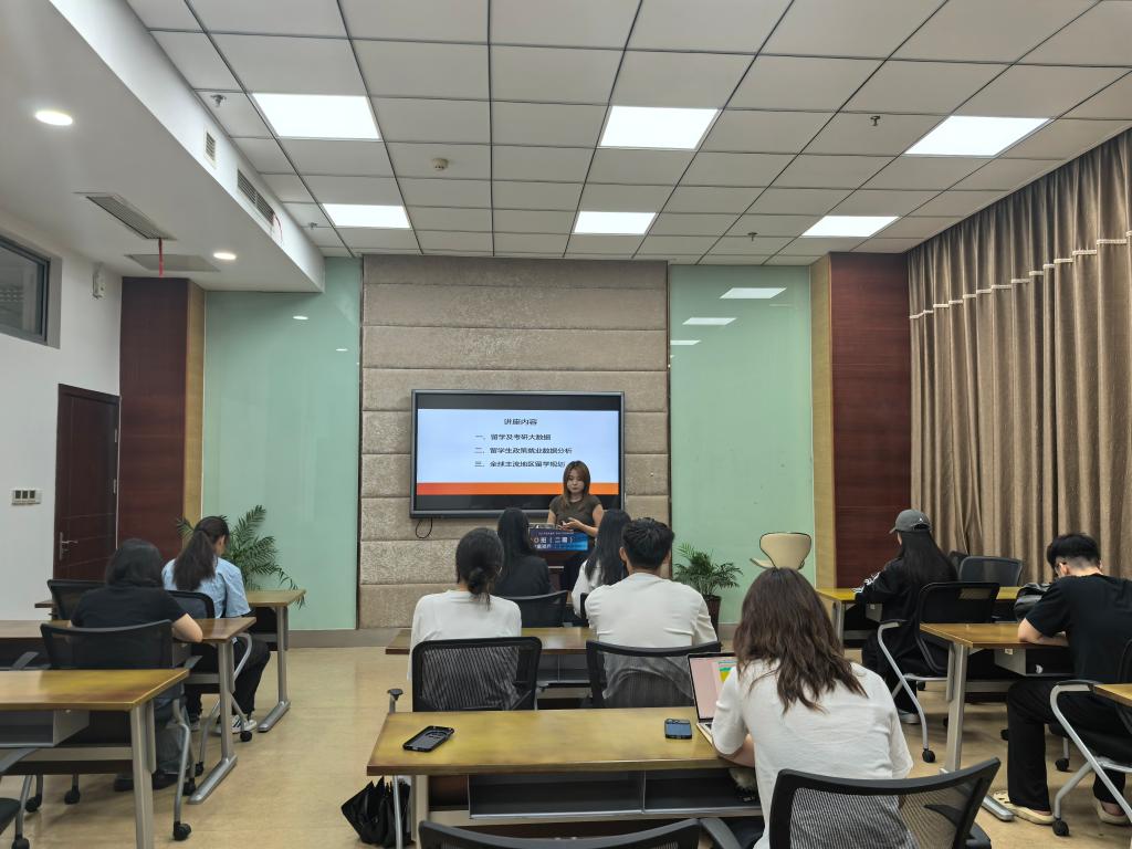 2026届本科生海外升学专题指导会在113教室举行。本次活动邀请海外升学专业指导老师王沈嘉及升学至香港大学的2022级本科生余佳颖对留学政策、留学生就业状况、全球主流地区留学规划、院校选择等进行详细解读。2022级本科生辅导员王瑞生及2022级意向海外升学本科生参加交流会。