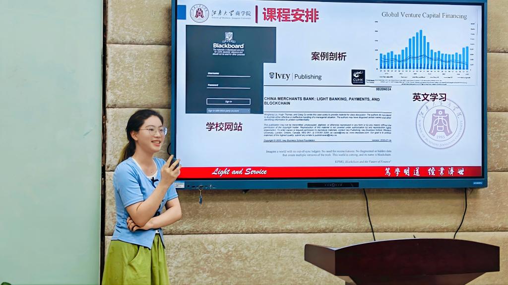 金融2301班的金涵同学则通过“鲲鹏计划”——江苏省优秀大学生暑期境外学习奖学金项目,分享了她在香港中文大学的游学见闻。她不仅介绍了项目申请条件与流程,还结合在港期间的课堂体验、课程设置与活动安排,作了细致说明。她生动讲述了课堂趣事与课余生活等温馨片段,现场反响热烈。她坦言:“这次旅程让我意识到自身英语能力的不足,也在文化碰撞中逐渐建立起全球化视角,这无疑是我人生中一笔宝贵的财富。”