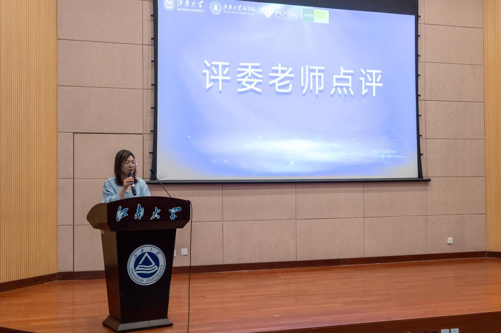 比赛结束后,案例中心主任马骏副教授代表指导老师发言,马老师表示学生团队认真准备,表现出MBA学子的精神风貌,案例课程收获良好,案例中心会持续做好案例开发和研究工作,助力学院高质量发展。评委主席钱文颖和其他四位评委分别对同学们的表现一一点评,大家充分肯定了参赛队员案例写作的规范性、教学说明设计的专业型都有了很大的提升,高度赞扬了赛事组委会精心的准备工作和专业多元化的评审机制,期待AVxxx 为中国工商管理领域持续带来更多、更好的江南故事。