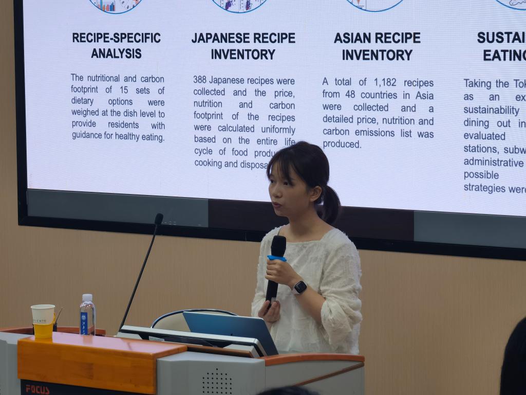 紧接着,龙吟副教授从家庭食品消费的碳排放切入,探讨了多项碳减排策略,如推行植物性饮食、优选当地和季节性食材、减少食物浪费等。她的研究团队选取了Ajinomoto发布的388道常见日本菜肴进行综合评估,分析了营养、价格与碳足迹的平衡。通过营养密度得分(NDS)分析,团队研究了如何在满足营养需求的同时产生最少的碳排放。此外,团队还系统收集了日本传统及现代菜谱,深入研究了日本居民的饮食习惯与相关的碳排放情况,并正在筹备亚洲食谱库,以期推动更广泛的可持续饮食方案。她提出,上述工作主要着眼于如何将可持续膳食与家庭行动有机结合。通过探索构建可持续的膳食模式,她强调了膳食在应对全球气候变化和改善健康状况方面的重要作用。