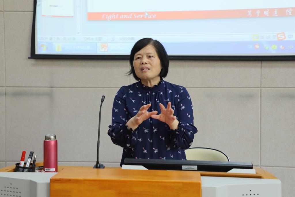 谢玉梅教授结合近期学习调研上海大学的先进做法以及自身的经验为大家作了分享。她指出,上海大学被认为是课程思政的发祥地,上海大学目前形成了“一模式、三系列”的课程思政教学体系。一模式是指项链模式(集中不同专题上学有所长的教授,各讲一段,就像项链上的吊坠,借助课程内在的逻辑线索,就像项链,最终形成整体集成的效应),三系列是指大国方略、人工智能、开天辟地,其中大国方略系列包括大国方略、创新中国、创业人生、时代音画、经国济民等N门课程。上海大学的“1+3+N”模式促成了上下互动,扎实推进,潜心教学,立德树人的良性循环。谢老师还根据自身的实践经验强调课程思政示范课程的建设需要老师熟悉教材,研究教材,做好设计教学内容的工作,注重教学效果和学生反馈,同时老师还需腹有诗书。老师在运用教学案例和数据时,要和中国实际相关,运用中国的案例和数据;也可以中外案例对比,更有利于帮助学生加深理解。