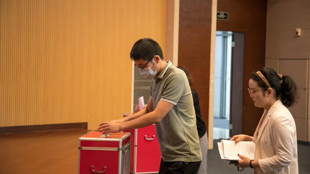 全体参会教职工进行巡察整改群众满意度测评