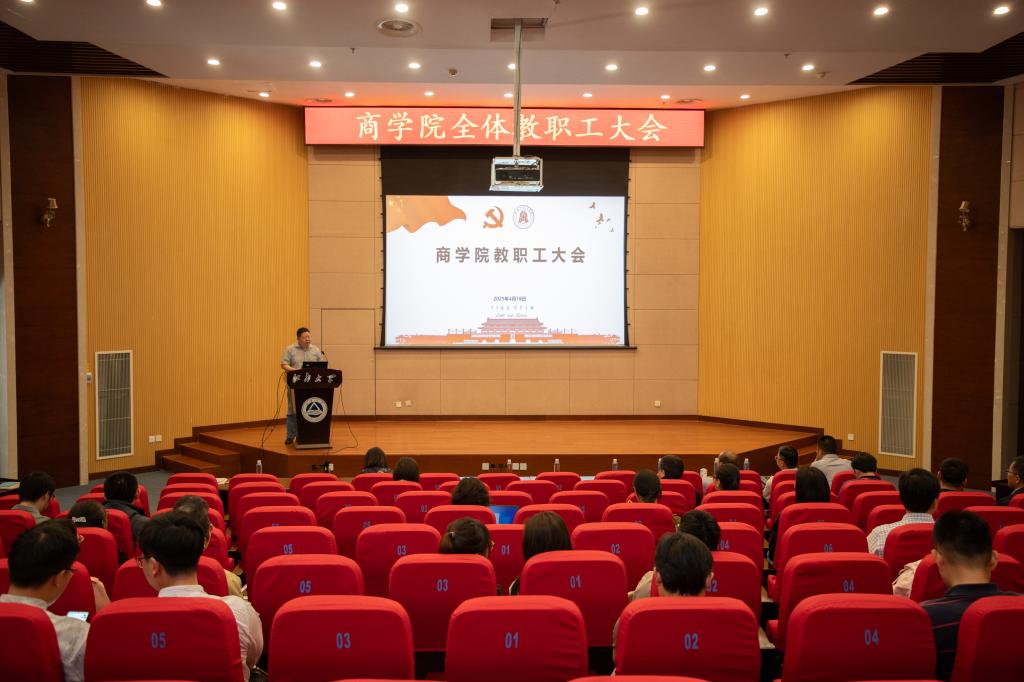 第五次党员代表大会精神,重点解读了大会报告《勇担强国使命,深化改革创新,为建设中国特色、世界一流、江南风格的研究型大学团结奋进》。他从学校过去五年的主要工作成就切入,详细阐述了教育强国建设新征程中的使命任务,对未来五年学校改革发展的方向和举措进行深入剖析,并强调以高质量党建引领高质量发展的重要性。此次学习让全体教职工明晰了学校发展的宏伟蓝图,激励教职工将个人发展与学校、学院的发展紧密结合。