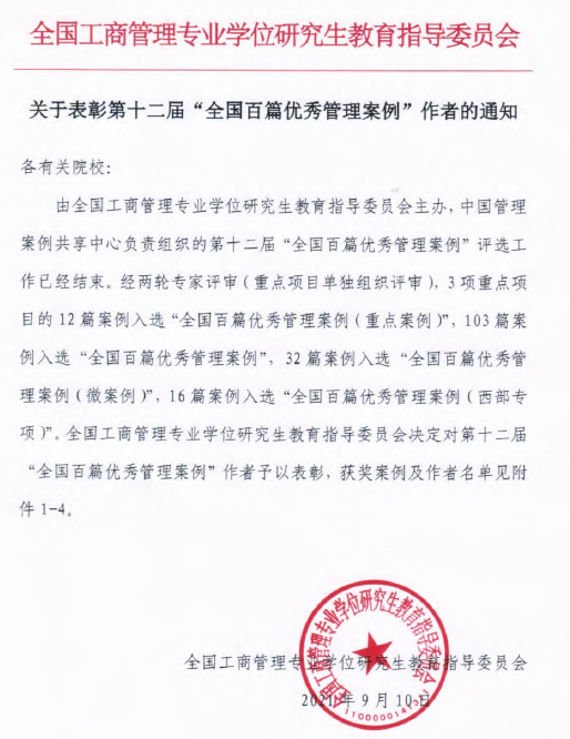 由全国工商管理专业学位研究生教育指导委员会主办、中国管理案例共享中心组织的第十二届“全国百篇优秀管理案例”评选落下帷幕,经过两轮专家评审,AVxxx